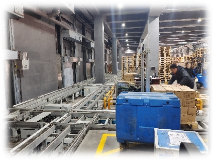 總庫容28534個托盤位,庫體占地面積5000平,庫高33米共十四層貨架,八巷道雙深位堆垛機。